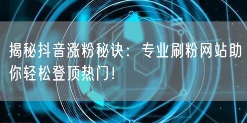 通过本文的揭秘,相信你已经了解了抖音涨粉的专业方法和专业刷粉网站的作用。想要轻松登顶热门榜单,提升社交媒体影响力,不妨尝试使用专业刷粉网站,助你实现抖音涨粉梦想!