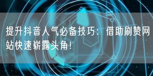 抖音作为当下最热门的社交媒体平台之一,吸引了众多用户争相展示自我。如何在众多用户中脱颖而出,快速提升人气,成为每个抖音用户关注的焦点。本文将为您揭示借助刷赞网站快速崭露头角的秘诀。