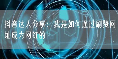 抖音达人分享:我是如何通过刷赞网址成为网红的