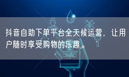 总之,抖音自助下单平台实现了全天候运营,让用户随时享受购物的乐趣。该平台提供了便捷的购物体验和优质的售后服务,让用户购物更加轻松、愉快。