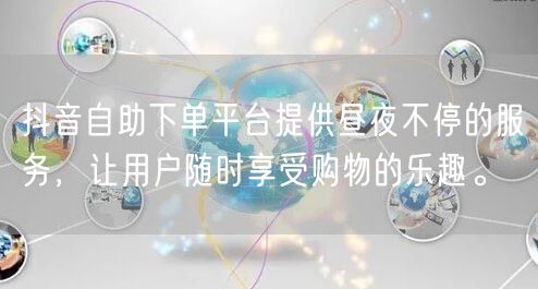 抖音自助下单平台提供昼夜不停的服务,让用户随时享受购物的乐趣。