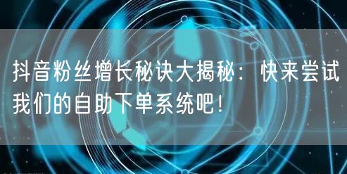 抖音粉丝增长秘诀大揭秘:快来尝试我们的自助下单系统吧!