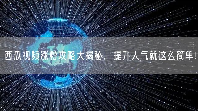 通过本文的涨粉攻略,相信你在西瓜视频上提升人气已经不再是难题。记住,优质内容、吸引人的标题和封面、社交媒体运用、粉丝互动以及数据分析与优化都是提升人气的关键。希望这些攻略能帮你获得更多的粉丝关注和点赞!